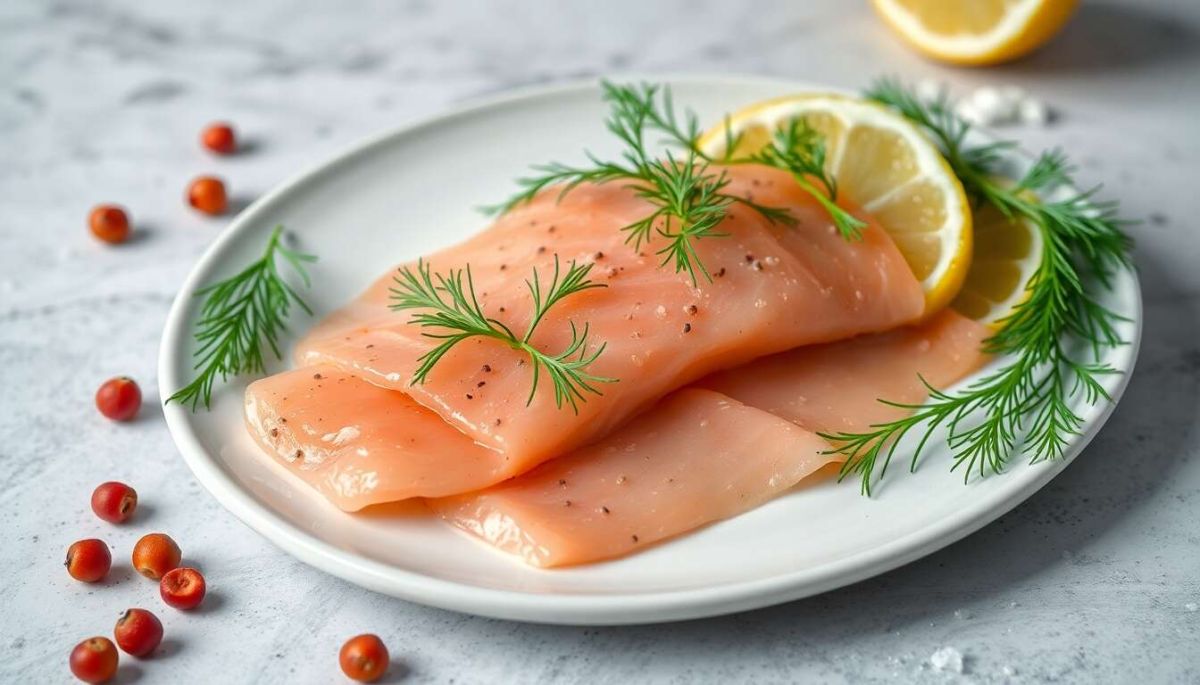 Pour commencer, disposez les tranches de saumon sur une grande assiette, en veillant à ne pas les superposer afin de permettre aux saveurs de bien s’imprégner. Dans un bol, mélangez l’huile d’olive et les zestes de citron, puis versez cette préparation uniformément sur le saumon. Ensuite, saupoudrez d’aneth, de baies roses, de fleur de sel et de poivre noir. Laissez reposer au réfrigérateur environ 15 minutes pour que les saveurs se mêlent harmonieusement.