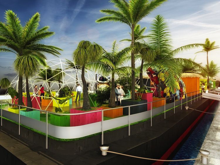 Partenaire officiel de la Coupe du Monde de la FIFA 2014™, Kia dévoile une véritable oasis flottante sur la Seine, du 12 juin au 13 juillet. Cet espace réunit football, gastronomie, musique, mode et culture, un voyage au cœur du Brésil tout en célébrant l'événement sportif mondial.