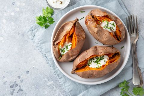 Les groupes d’aliments tels que les pâtes, le riz, les pommes de terre, ainsi que les légumineuses (lentilles, pois chiches) représentent d'excellentes sources de glucides. Le Dr Cohen recommande particulièrement les pommes de terre bouillies et la patate douce en tant que choix privilégiés pour vos dîners. «Cette dernière gagne en popularité grâce à sa richesse en fibres, tandis que les pommes de terre traditionnelles restent un choix peu calorique, à environ 100 calories pour 100g».