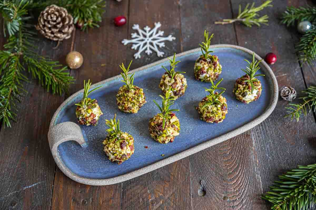 Pour une présentation élégante, décorez vos billes de fromage avec une branche de romarin frais, ou proposez-les avec des bâtonnets salés pour croustillante à souhait!