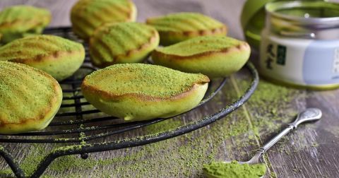 • Madeleines moelleuses, colorées comme la pierre précieuse jade