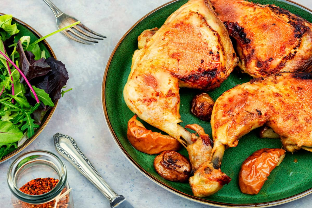 “Avec le poulet, une cuisson en deux étapes fonctionne à merveille !” déclare le chef dans sa vidéo Instagram. En effet, le poulet bénéficie d'une cuisson en deux temps : d'abord saisir les cuisses à feu vif pour dorer la peau, puis les arroser de vin blanc pour une chair riche en saveurs. Une fois vos cuisses assaisonnées, n'oubliez pas d'ajouter une pointe de farine ou de fécule de maïs : c'est le petit plus du chef pour un croustillant optimal. Faites chauffer une poêle avec un filet d'huile neutre, comme l'huile de tournesol ou de pépins de raisin, et déposez-y les cuisses côté peau. Laissez dorer avant de les retourner.