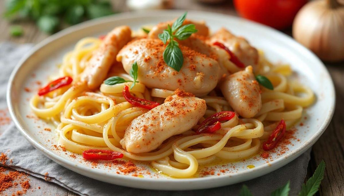 Les pâtes légères au poulet, piment et paprika sont un plat irrésistible alliant simplicité et goût raffiné. Conçue pour ceux qui souhaitent savourer un bon repas tout en préservant leur équilibre alimentaire, cette recette est à la portée de tous grâce à des ingrédients accessibles.