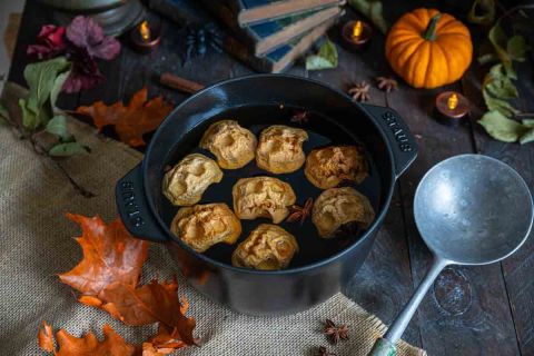 Pour concocter la boisson, il suffit de chauffer le jus de pomme avec les épices jusqu’à frémissement, puis de laisser infuser. Au moment de servir, réchauffez doucement le mélange et ajoutez les têtes de pommes séchées. Pour une présentation optimale, servez le jus chaud dans des mugs originaux, accompagnés de biscuits à thème Halloween pour une expérience gustative mémorable.