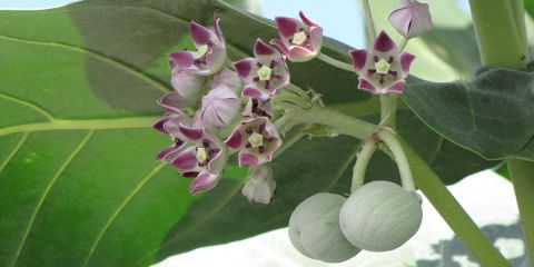 Le pommier de Sodome (Calotropis procera), connu sous divers noms tels que l'arbre à testicules ou le roustonnier, est un arbuste remarquable qui prospère dans les zones arides d'Afrique et du Moyen-Orient. Bien qu'adapté à la chaleur, il se révèle vulnérable aux températures inférieures à 5 °C.