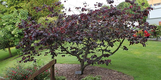 Ce cousin de l'arbre de Judée (Cercis siliquastrum) peut se développer avec plusieurs troncs, offrant ainsi un port étalé et une cime arrondie. Ses feuilles, qui mesurent entre 6 et 10 cm, sont d'abord d'un bronze lumineux au printemps avant de virer à un éclat jaune à l'automne. La variété la plus prisée, Cercis canadensis 'Forest Pansy', se démarque par ses feuilles d'un rouge pourpré intense.