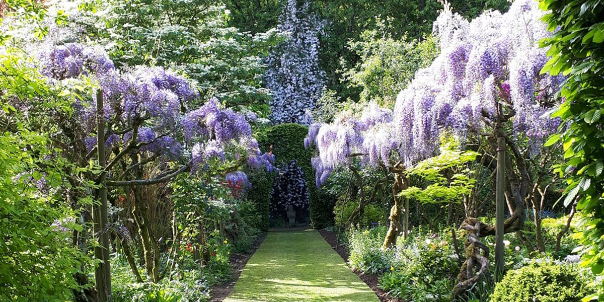 - Le jardin de roses : Inspiré du design moderne, ce jardin met en valeur des roses que l'on trouve parfaitement organisées dans une structure circulaire. Les rosiers grimpants, et autres plantes, s'élèvent le long d'anciens bâtiments agricoles, offrant une harmonie entre nature et histoire.
