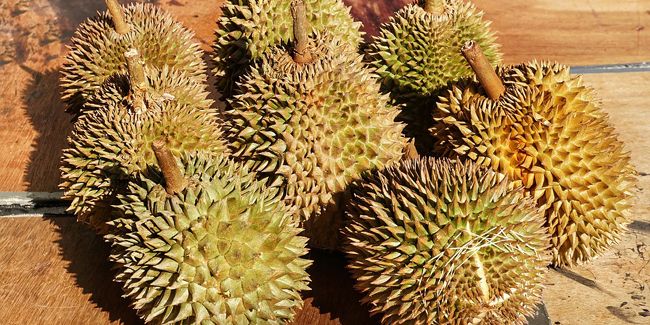 La récolte a lieu environ six mois après la floraison, lorsque le fruit prend une teinte jaunâtre et que sa coque commence à s'ouvrir, libérant ainsi son parfum inoubliable. En cuisine, le durian se transforme en pâtisseries, glaces et boissons nutritives, tandis que ses graines peuvent être dégustées grillées.