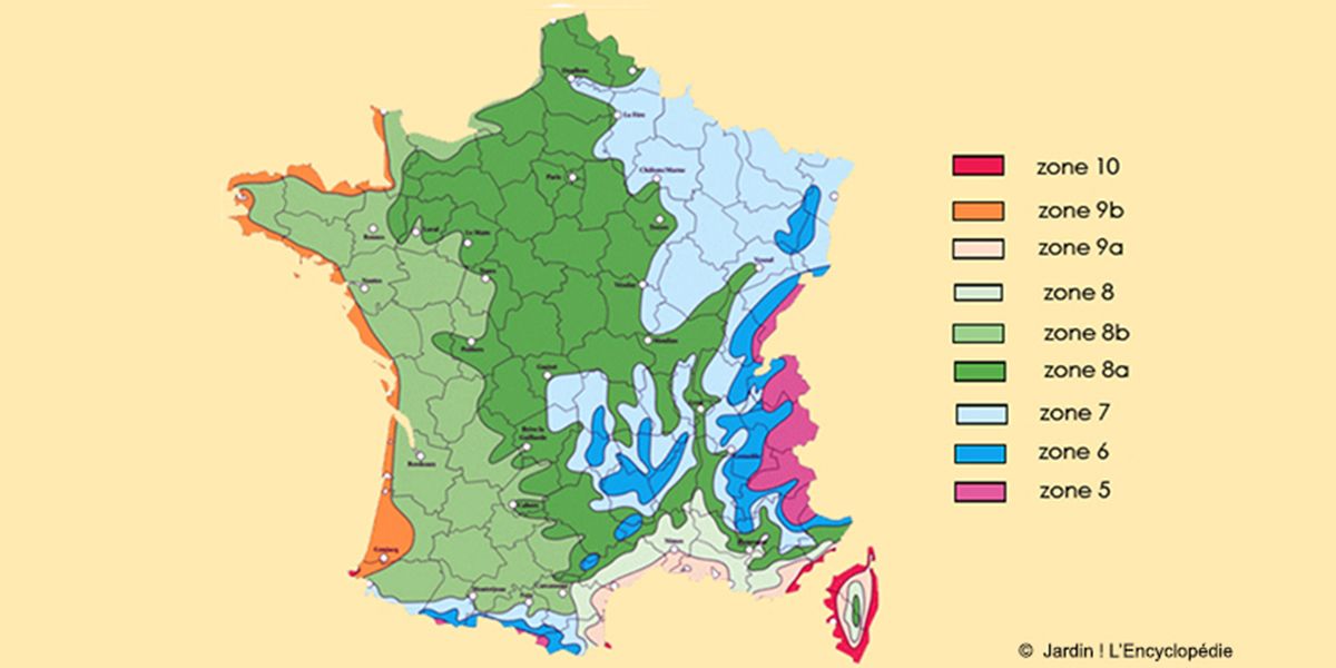 - À la zone 10, réservée aux climats méditerranéens (comme pourtour de la Corse et Côte d'Azur).