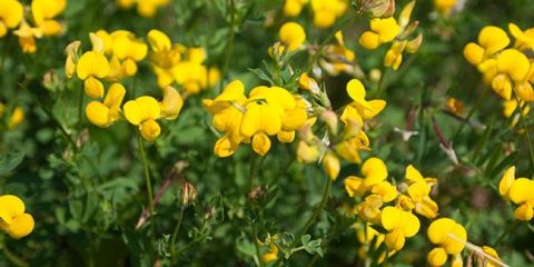 Aussi appelé trèfle cornu ou sabot de la mariée, le lotier corniculé mesure entre 10 et 40 cm et peut survivre à des températures allant jusqu'à -15°C. On le trouve couramment dans les prairies, les chemins et les terrains secs, à travers l'Europe, l'Asie et l'Afrique du Nord, jusqu'à 3000 m d'altitude.