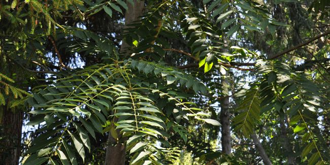 Ce majestueux arbre colonnaire peut atteindre jusqu’à 15 mètres de hauteur. Sa couronne large et étalée, avec une écorce brune et rugueuse, lui confère un cachet unique. Ses feuilles, qui peuvent mesurer jusqu’à 60 cm, offrent un goût aromatique d'oignon, très apprécié. En été, ses fleurs translucides se dévoilent en longues panicules, ajoutant une touche de beauté à cet arbre.