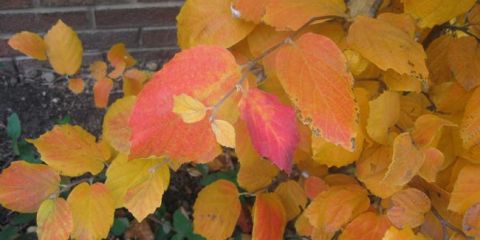 Le Fothergilla, un arbuste rustique à la croissance douce, est prisé pour ses ravissantes teintes automnales. Les feuilles, qui commencent par un jaune éclatant, évoluent vers des nuances orangées avant de se teinter de rouge. Caduques, elles affichent une texture légèrement gaufrée, sont veinées et présentent une face supérieure vert foncé, tandis que le dessous arbore un aspect glauque.
