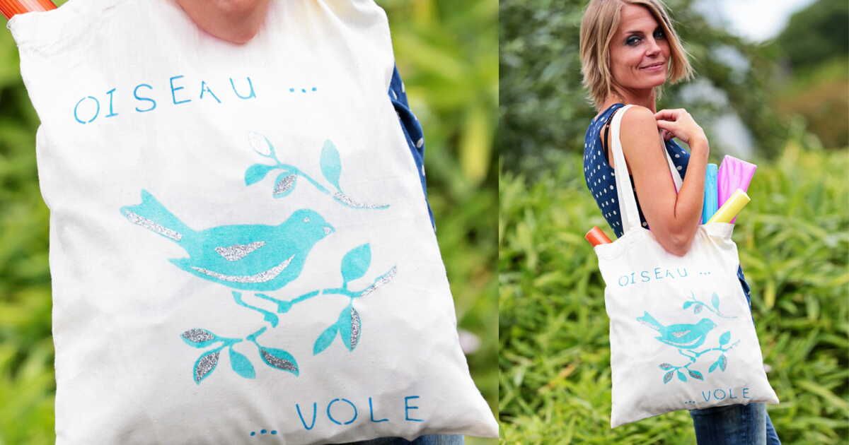 - Matériel : Procurez-vous un totebag en toile, de la peinture pour tissu et un pochoir de votre choix.