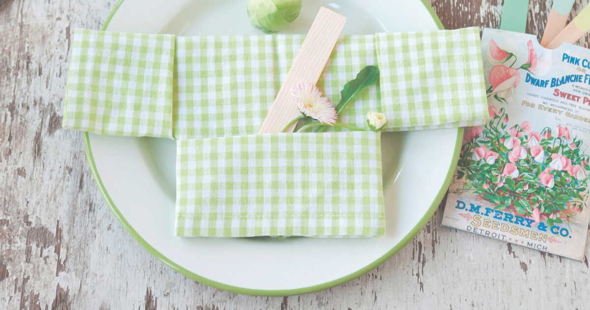 Matériel requis : une serviette carrée (lin ou coton pour un rendu structuré) et éventuellement un ruban fin ou une bande de papier décoratif.