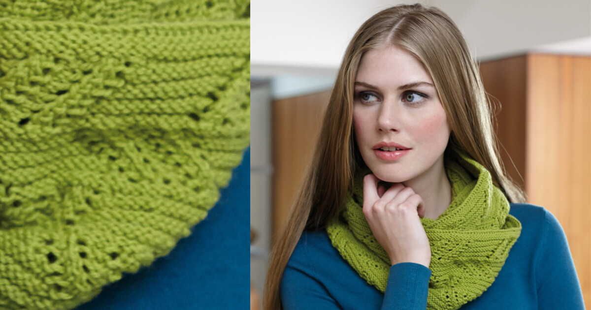 Ce snood ajouré en vert anis se distingue par ses motifs chevrons et ses trous-trous, offrant une texture unique qui ne manquera pas d'attirer les regards. Tricoté pour les plus expérimentées, ce modèle allie à la fois sophistication et chaleur, parfait pour affronter les jours froids.
